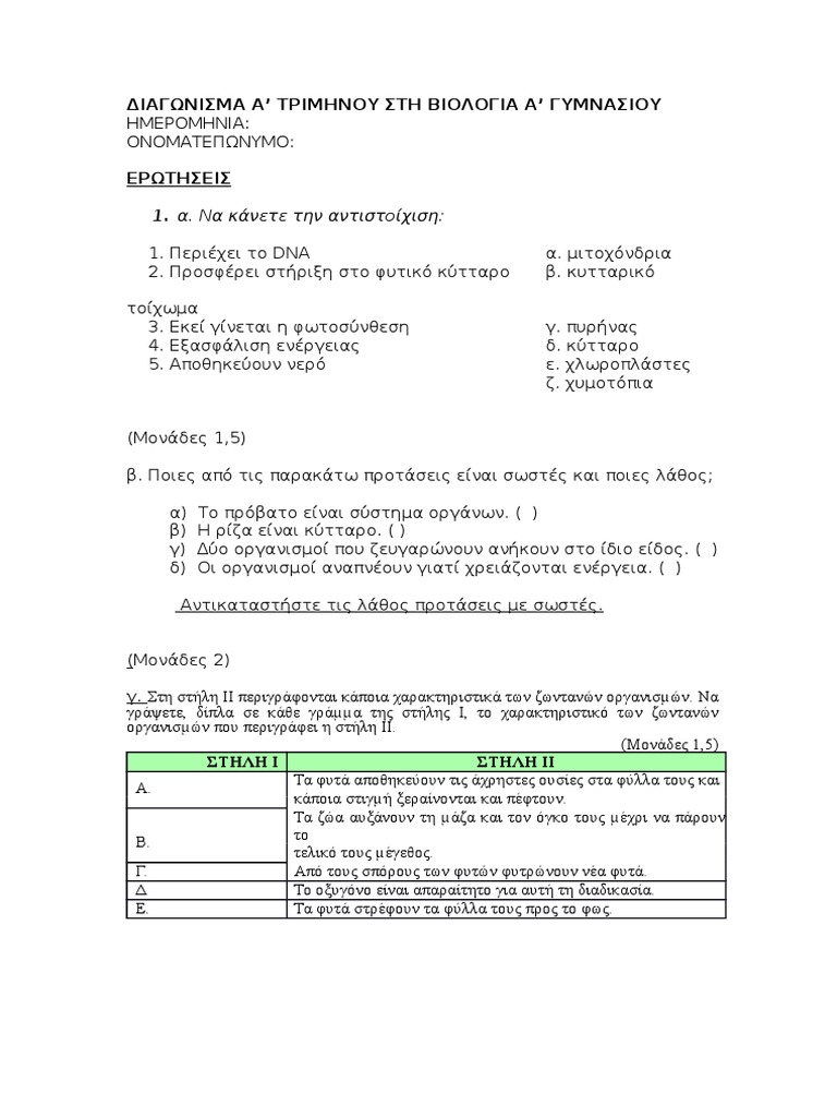 / Βιολογια Α Γυμν Διαγωνισματα : Βιολογία Α Γυμνασίου Ερωτήσεις-Απαντήσεις-Ασκήσεις με ... : Περισσότερο εκπαιδευτικό υλικό για το γυμνάσιο εδώ.